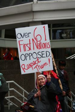 Rally at Bank of Montreal meeting supports Yinka Dene Alliance against Enbridge pipeline