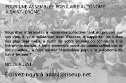 POUR UNE ASSEMBLÉE POPULAIRE AUTONOME À SAINT-JÉRÔME !
